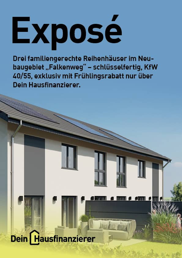 Jedes Haus bietet ca. 120 m² Wohnfläche auf 3 Ebenen, Südgarten und kann nach KfW 40 oder 55 gebaut werden. Baubeginn nach Verkauf von 2 Häusern – idealerweise Mitte 2026.